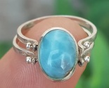 Flip 2 in 1 LARIMAR-AMBER gemstones 925 sterling silver reversible ring size 5.25 (mi-17)