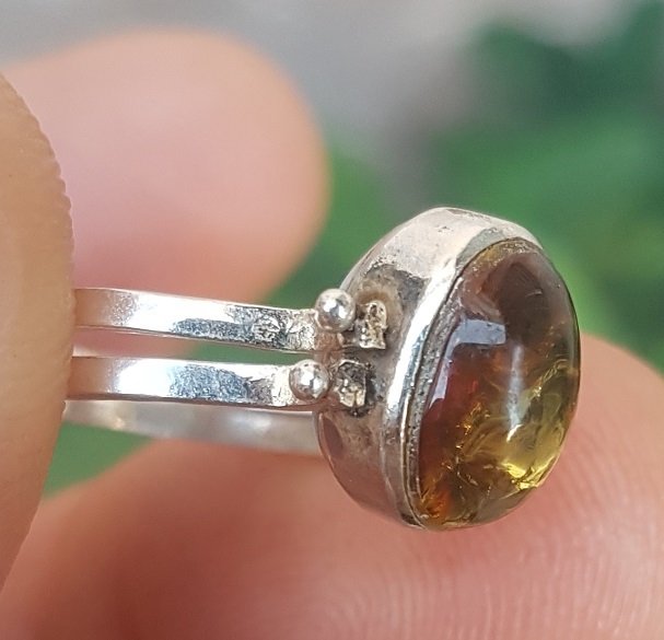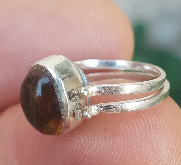 THIS REVERSIBLE RING IS HANDMADE WITH NATURAL LARIMAR - AMBER gemstones and 925 sterling silver.