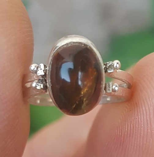 - Flip 2in1 LARIMAR-AMBER gemstones 925 sterling silver reversible ring (mi-17)