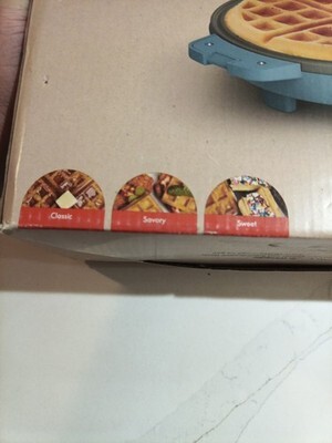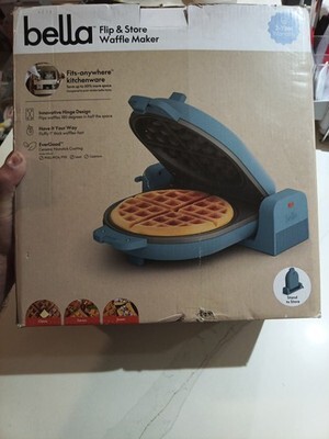 The Flip-N-Store Belgian Waffle Maker by Bella features an Evergood? Ceramic Nonstick Coating in Surf Blue, making it both stylish and easy to clean. With a round shape and electric power source, this waffle maker has a modern design that is perfect for any kitchen. The product is PFAS free and made of ceramic and plastic materials, ensuring a safe and high-quality cooking experience. With a capacity for one waffle and a power of 1000 W, this Belgian Waffle Maker is a convenient addition to your breakfast routine. External box has signs of wear and some small dents. Item is new