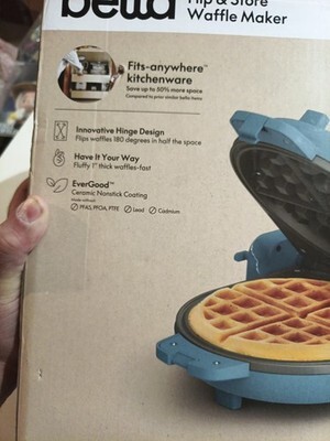 - Flip-N-Store Belgian Waffle Maker, Evergood™ Ceramic Nonstick Coating, Surf Blue