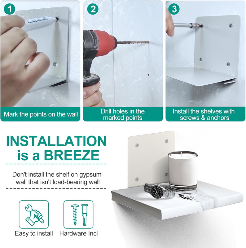 - Floating Book Shelves for Wall, Steel Constructed Hidden Bookshelf with Mounting
