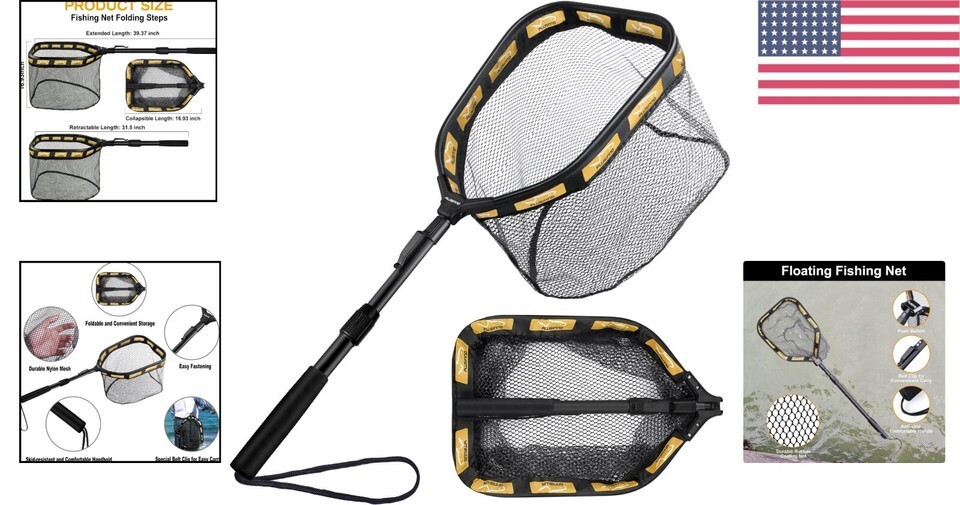 - Floating Rubber Coated Fishing Net - Lightweight, Folding & Telescopic Handle