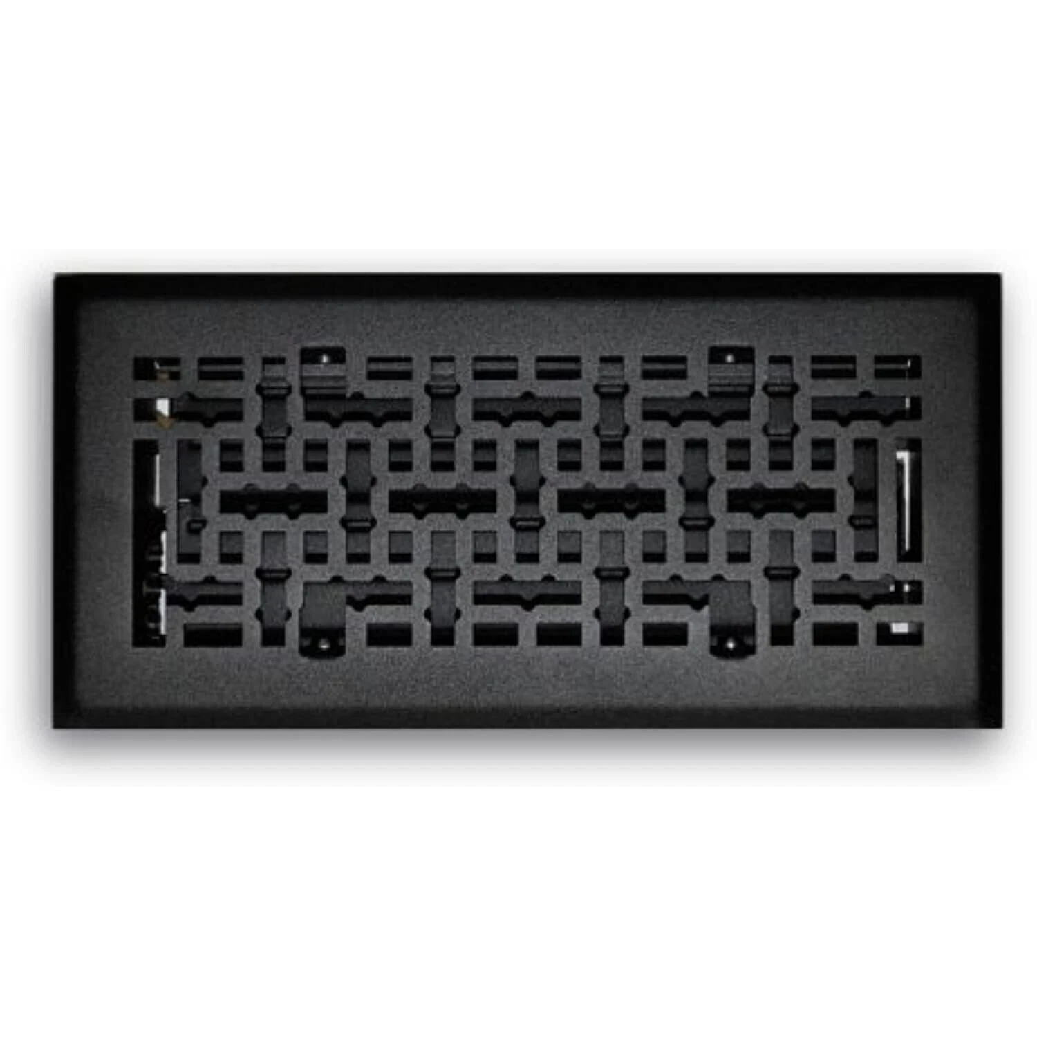 This floor register is used by HVAC contractors, builders, and homeowners in finished living spaces such as living rooms, bedrooms, hallways, and offices where quiet, reliable airflow and visual harmony are essential. It is typically installed over supply or return ducts during new construction or as a direct replacement for outdated or damaged grilles. The fixed louver design ensures air is directed consistently into the room without user intervention?ideal for areas where adjustable dampers are unnecessary or prone to tampering. Its matte black finish provides a subtle contrast against light flooring or a seamless match with dark interiors, enhancing room aesthetics without drawing attention. Trusted for its durability and clean lines, this register delivers functional performance and understated elegance in everyday comfort systems.