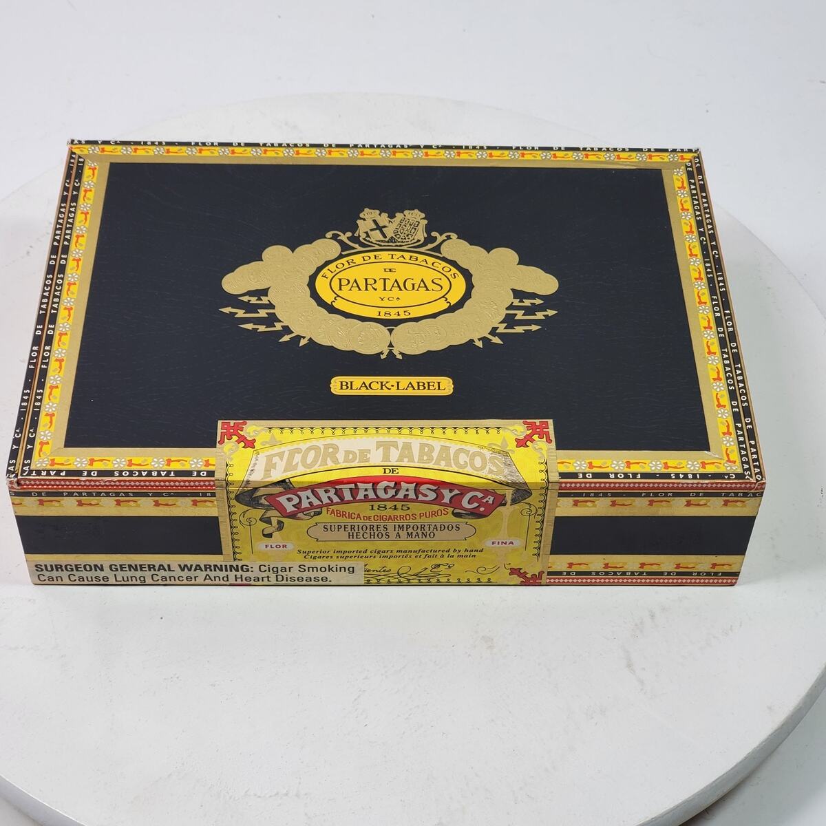 - Flor De Tabacos De Partagas Cigar Box 9x6x2" Inch Tobacciana EMPTY Wood