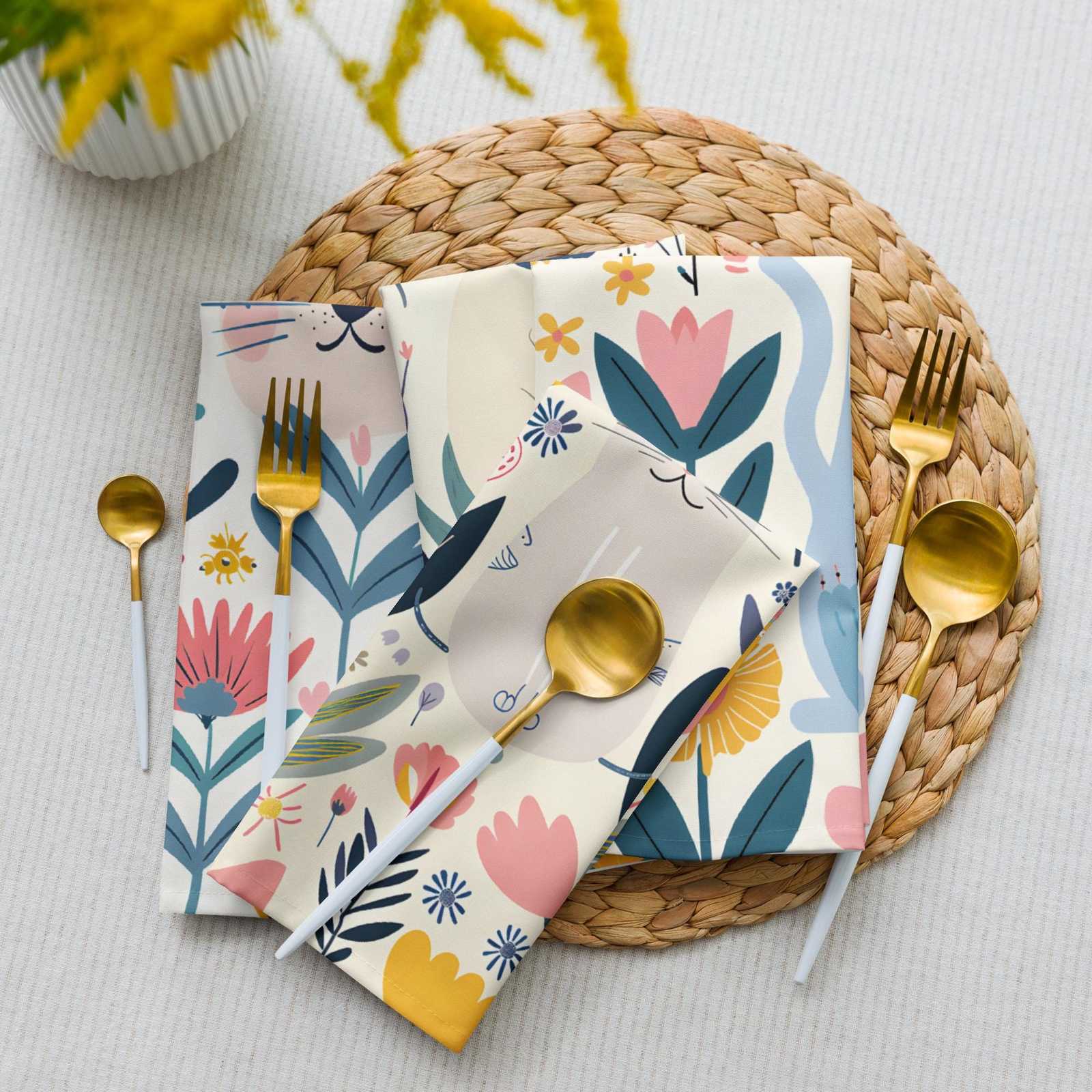 Enhance your dining experience with this charming Floral Cat Dining Set, featuring a beautifully coordinated cotton twill table runner and matching cloth napkin bundle adorned with playful floral cat designs. This versatile set combines farmhouse-style elegance with everyday functionality, making it the perfect addition to your table for both casual meals and special occasions. Ideal for cat lovers, housewarmings, and holiday gatherings!