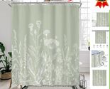 - Floral Printed Waterproof Shower Curtain in Sage Green - Rustic Farmhouse Charm