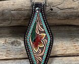 Floral Tooled Leather Hand Painted Key Chain Bag Charm