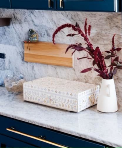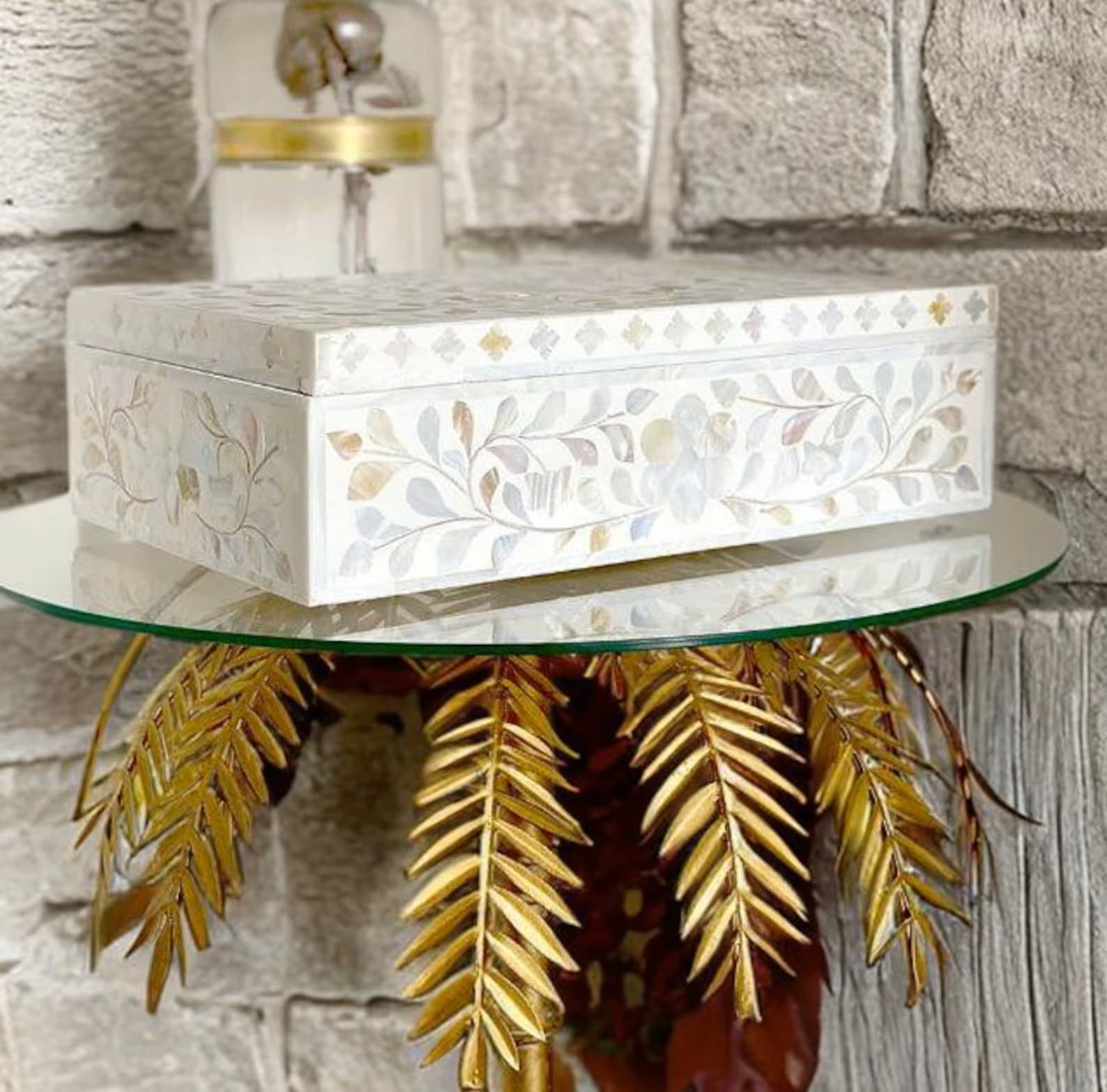 - Floral White Mother of Pearl Inlay Decorative Box - Handmade Jewelry Storage - W