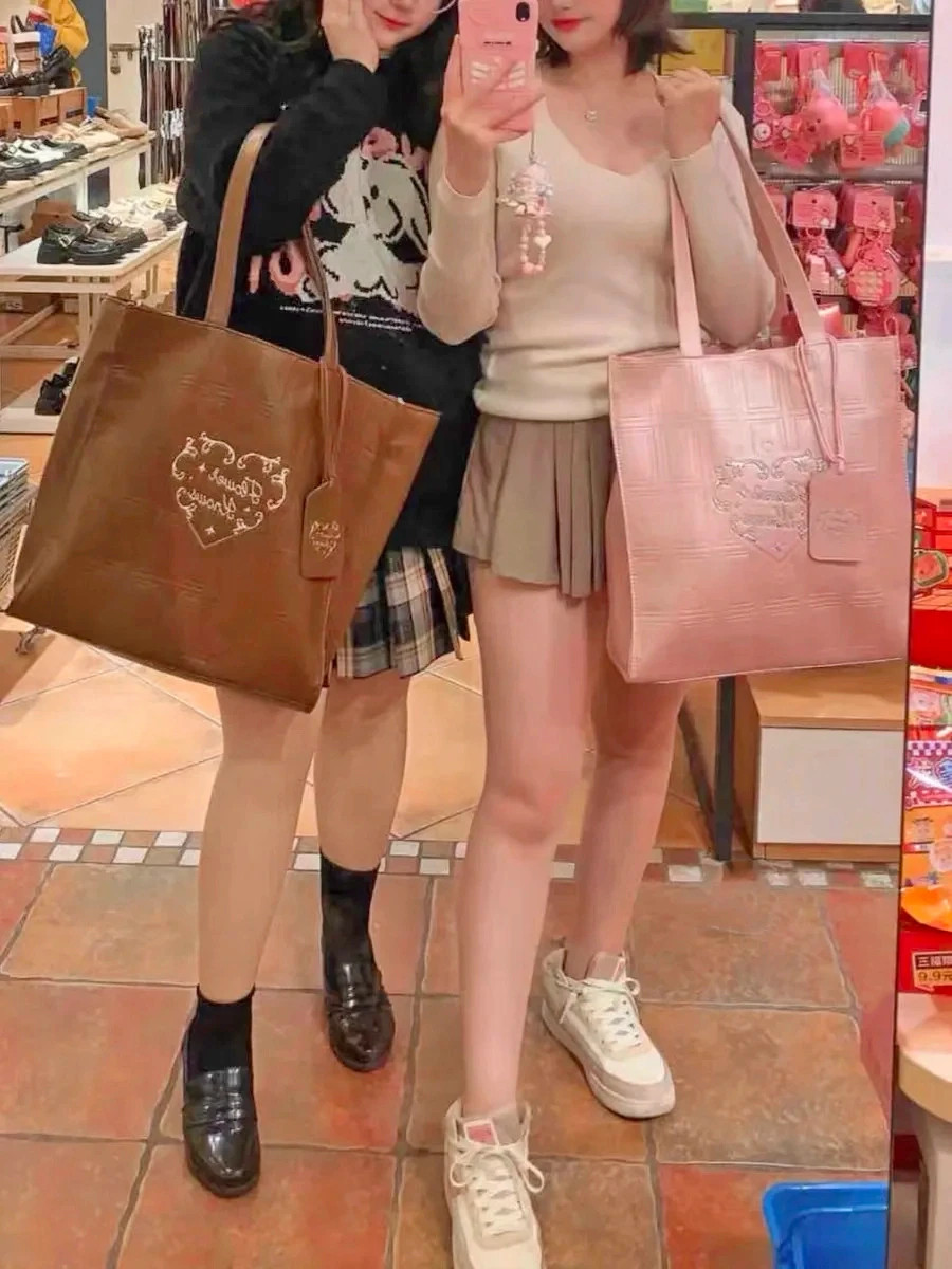 Flower Knows Chocolate Wonder-Shop Series Faux Leather Tote Bag - BROWN or PINK