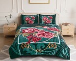 FLOWERS GREEN BLANKET WITH SHERPA VERY SOFTY THICK & WARM 3 PCS KING SIZE