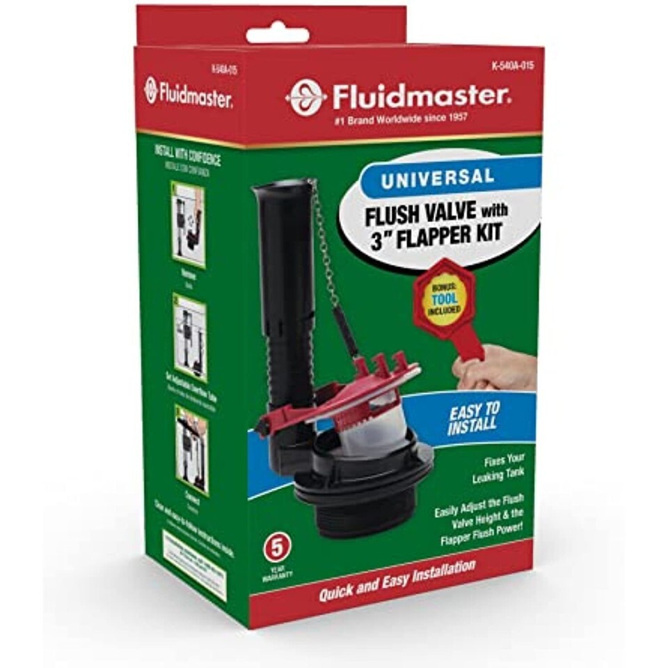 The Fluidmaster K-540A-015 Adjustable 3 in. Flush Valve Repair Kit, comes with everything needed to enhance your toilets flush performance. Quickly repair tank to bowl leaks and save water. An easy to install design that fits 3 in. toilet flush valve HET toilets (built 2005 and newer) and fits most common models. Now featuring our helpful toilet tool, a red toilet wrench, to speed up installation and eliminate hassle. Repair broken flush valves, or simply upgrade standard designs. The flush valve overflow tube is easily adjustable to fit more tank. While the 3 in. adjustable toilet flapper allows for a customized water use with each flush to save. Built durable with a solid frame, silicone seal corrosion resistant materials. Includes 3 in. flush valve, gasket, hardware and tool for a complete repair.