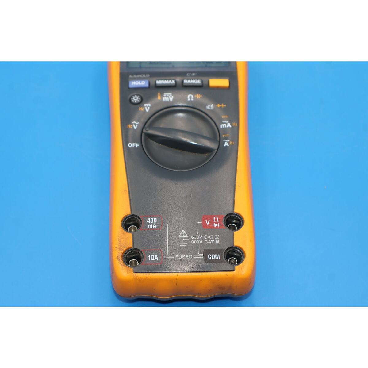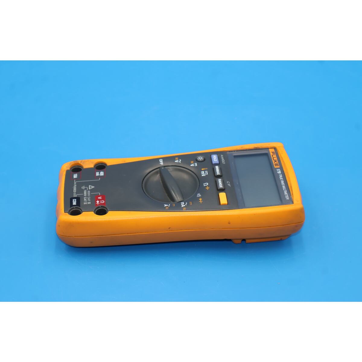 This listing is for a Fluke 179 True RMS Digital Multimeter in good used condition. The unit shows normal signs of use, including scuffs, scratches, and grime, but nothing major or distracting. Overall, it?s in solid shape with average wear from regular use.