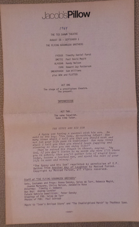 - Flying Karamazov Brothers signed photo w program Jacob's Pillow, Berkshires 1984