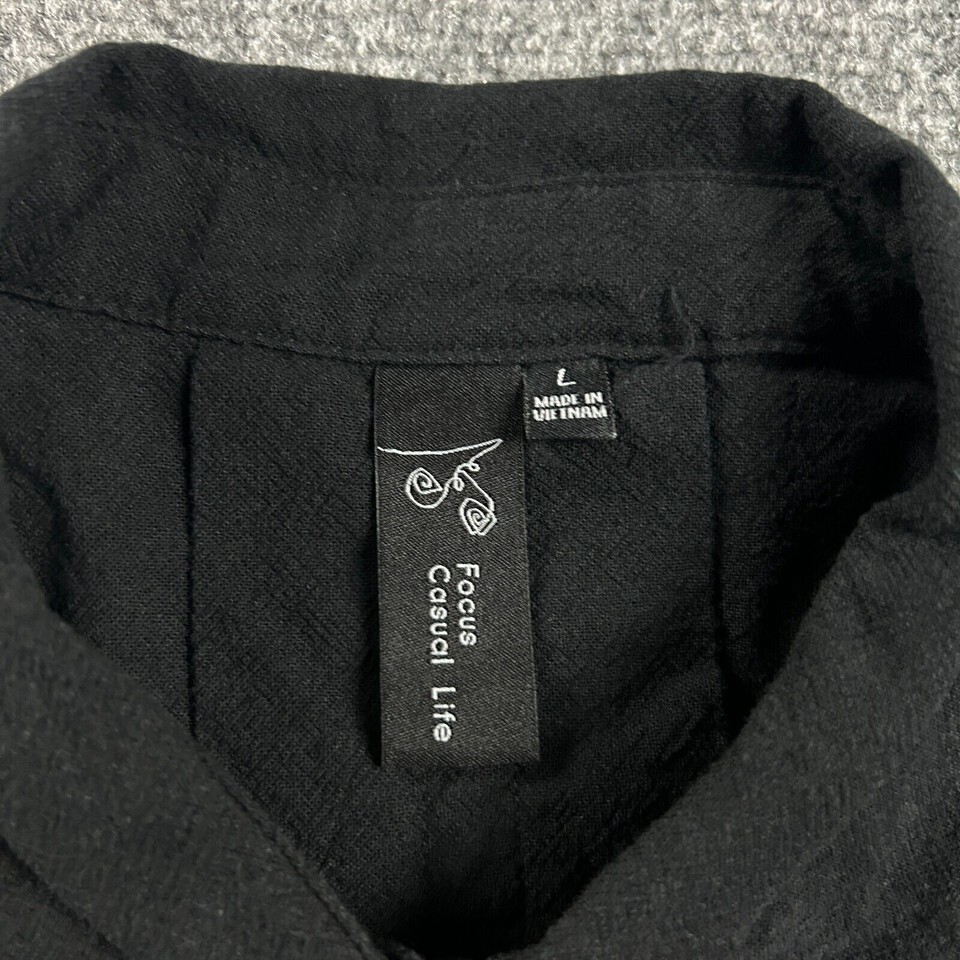 - Focus Casual Life Top Womens Large Black Button Up Short Sleeve Oversize A1