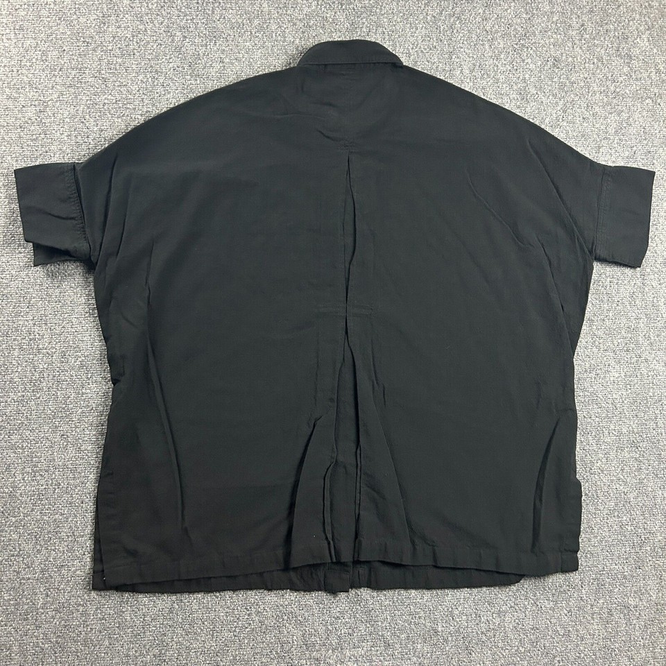 Focus Casual Life Top Womens Large Black Button Up Short Sleeve Oversize A3