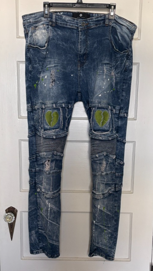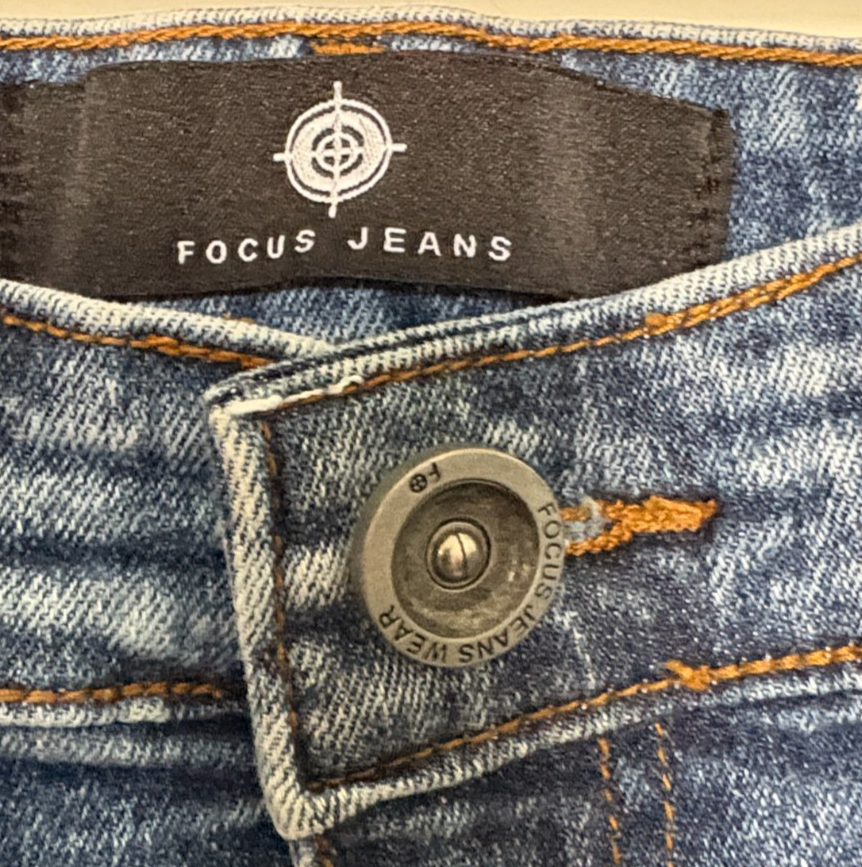 Focus Jeans Stylish Blue Distressed Men Jeans Size 42/32. Upgrade your wardrobe with these stylish blue distressed jeans. Perfect for a casual look, these jeans feature unique detailing and a comfortable fit. Waistband measures 42?. Inseam is 32.5?. Rise is 12?. Total length from the top of the waistband to hem is 43?. 98% Cotton, 2% Spandex and Machine Washable.. Excellent Used Condition - See Photos for Further Description.