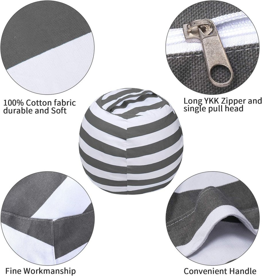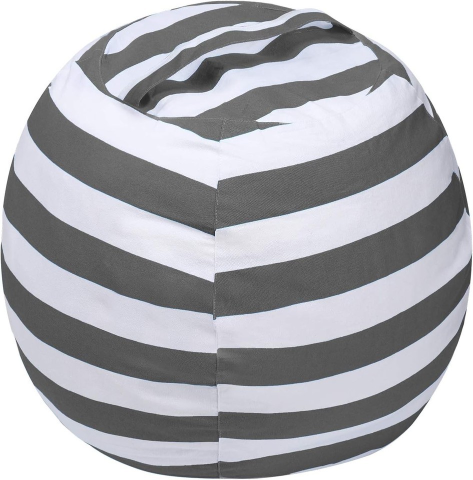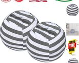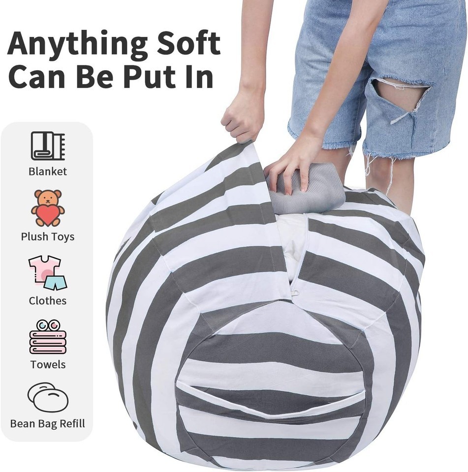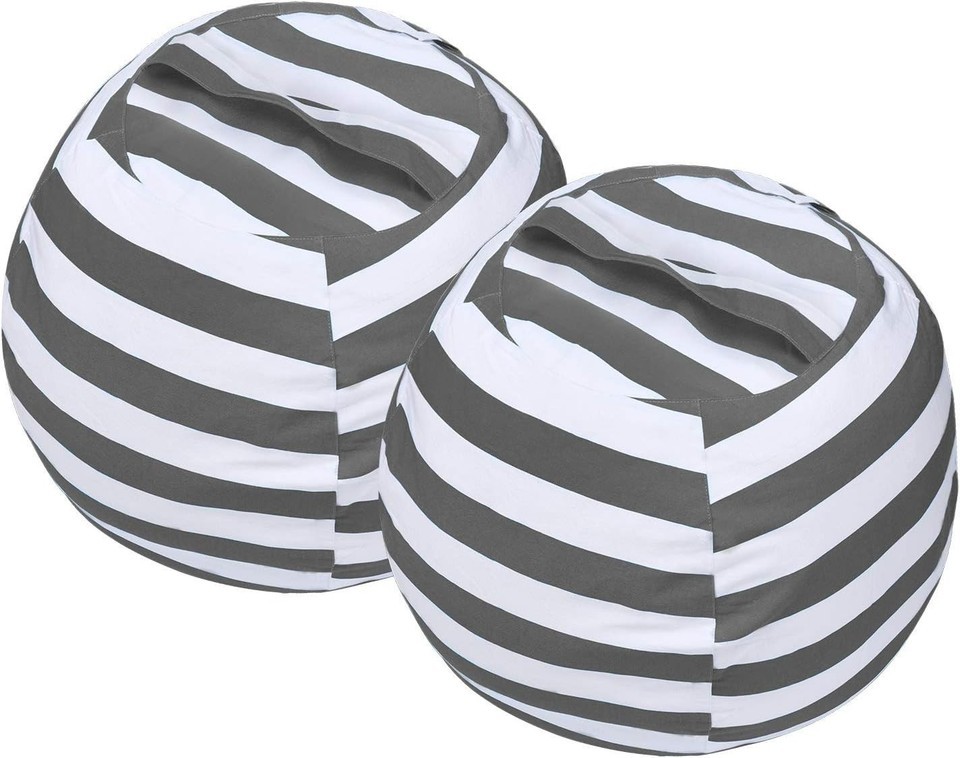 - Foldable Grey Cotton Bean Bag with Zipper for Stuffed Animal Storage - 2 Pcs