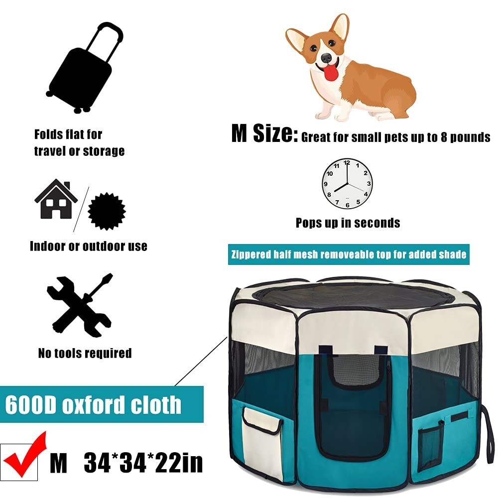 Portable Pet Playpen, Dog Playpen Waterproof Foldable Indoor/Outdoor Travel Use Dog Kennel Pet Tent Pet Exercise
