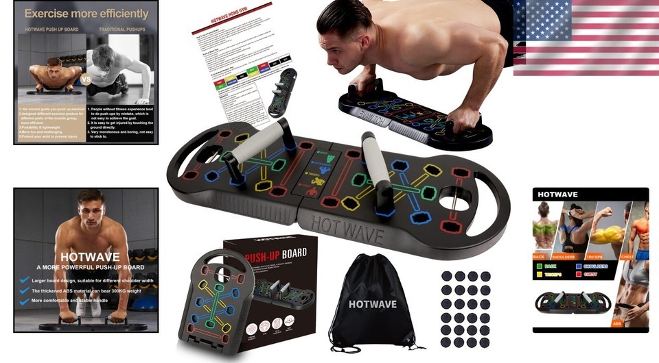 Powerful Push Up Board: Upgraded design specifically targets different muscle groups including chest, shoulders, abs, biceps, and back.