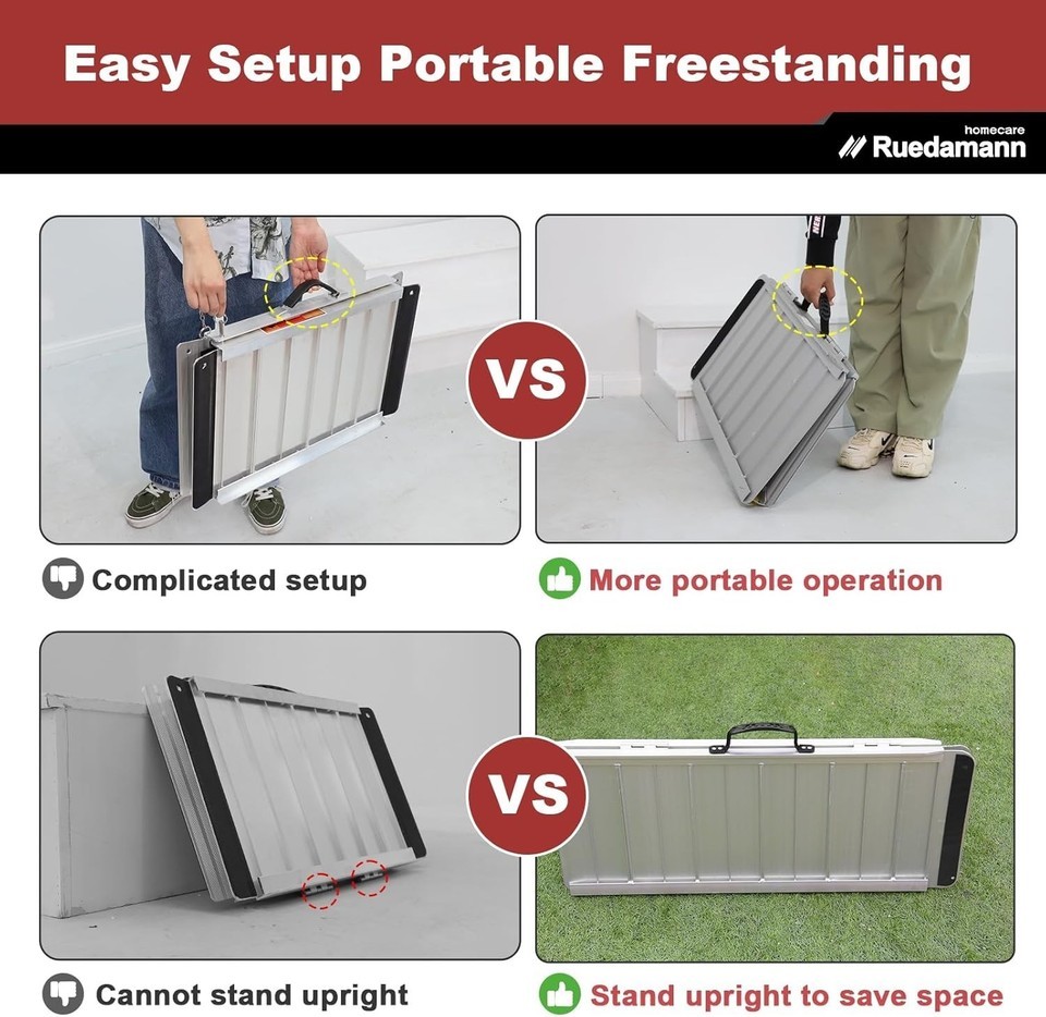 - Folding 2 Foot Non-Slip Wheelchair Ramp - Durable Aluminum for Easy Access