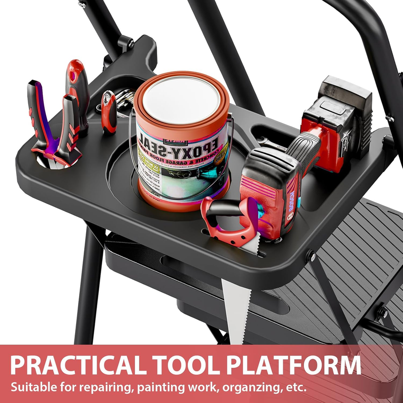 Portable Space Saving: This step ladder folds to a thickness of 4.17 inches, and the lock-and-open system makes it easy to open and fold for storage and transportation