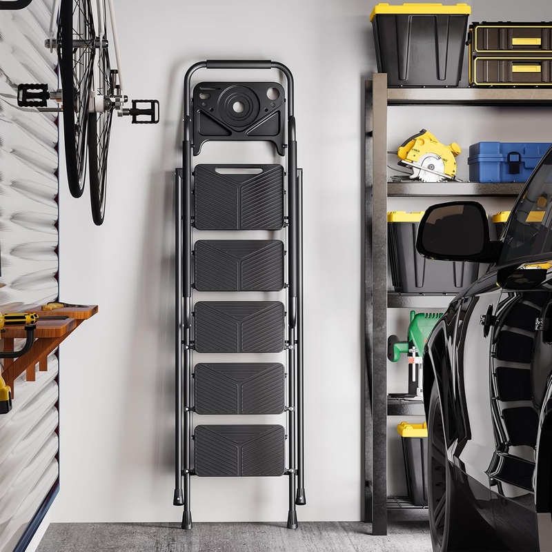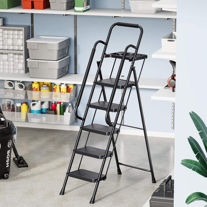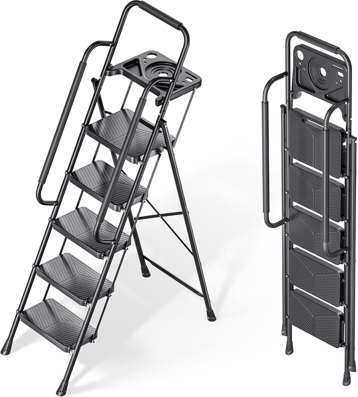 - Folding 5 Step Ladder, Portable Ladder for Multi-Purpose, Home, Kitchen, Heavy S