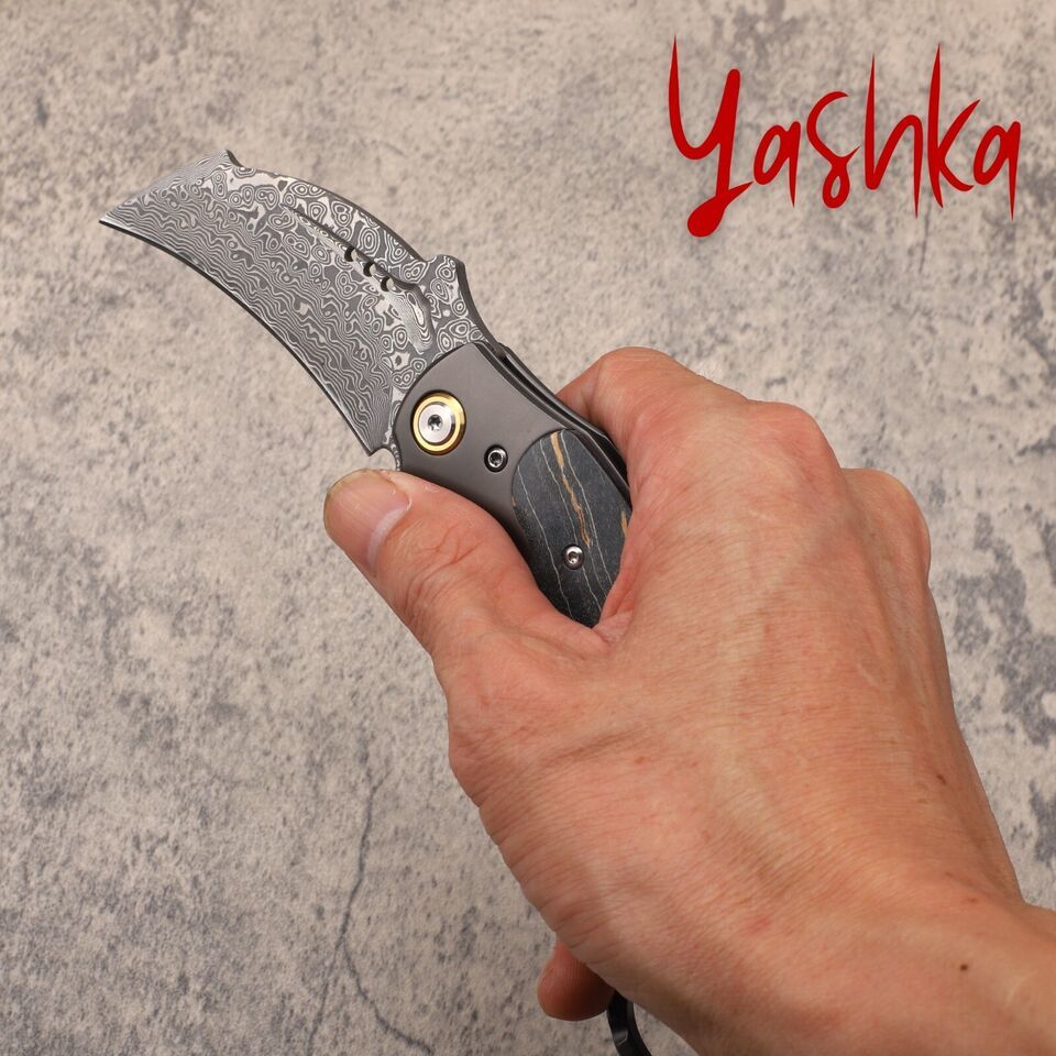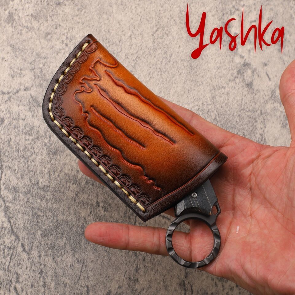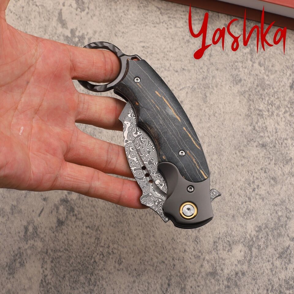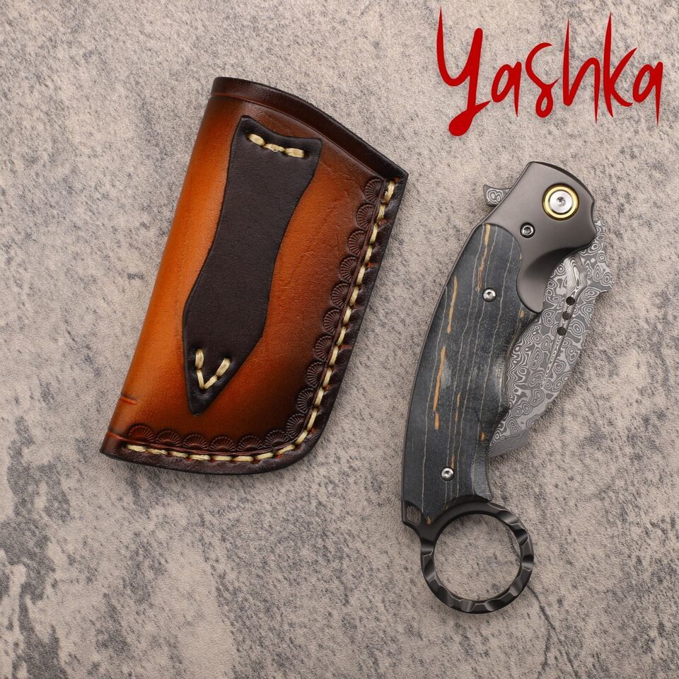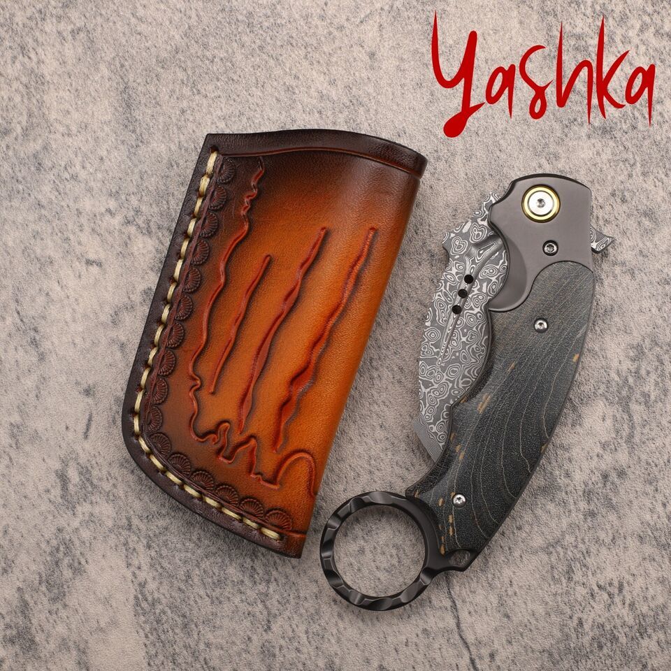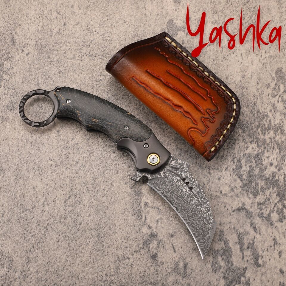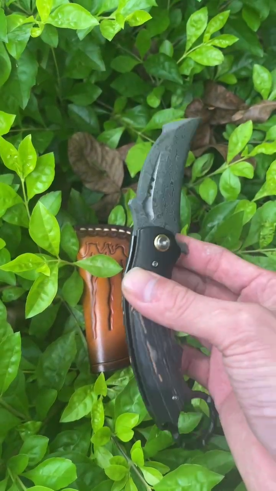 - Folding Knife Damascus Steel Leather Scabbard Hunting Outdoor Camping Tools New