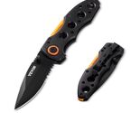With 7Cr17MoV blade and partially serrated blade, our pocket knife is ideal for cutting wood, wires, ropes, and other tough materials. The thumb stud allows effortless single-handed operation, and aluminum handle offers an ergonomic grip. Serve as a self-defense tool if necessary.