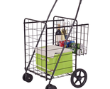 - Folding Shopping Cart Jumbo Basket Grocery Laundry with Swivel Wheels Black