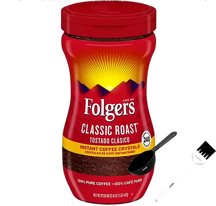 - Folger's Classic Roast Instant Coffee Crystals, 16 oz flip top jar