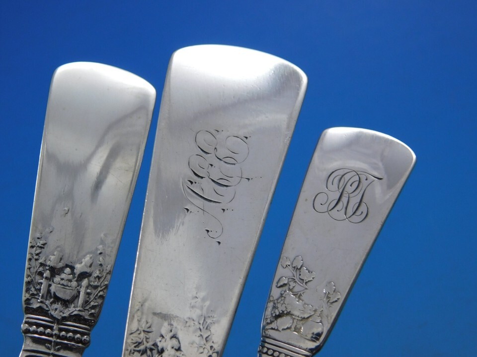 This set is in excellent vintage condition, with varying monograms on the reverse. This set will be lightly polished and sealed in individual plastic sleeves prior to shipping. Exceptional!
