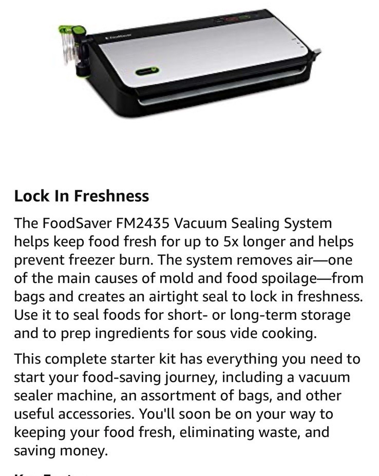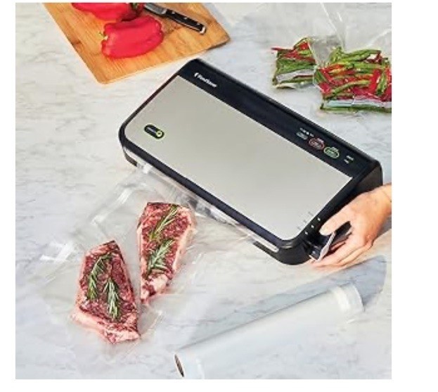 The FoodSaver FM2435-ECR Silver Vacuum is a reliable vacuum sealer designed for home use. With its sleek silver color and compact design, it is easy to store in the kitchen while adding a touch of modern style. This model is from the trusted brand FoodSaver, known for producing high-quality food preservation products. The FM2435-ECR is specifically designed to efficiently seal and preserve food items, making meal prep and storage a breeze.