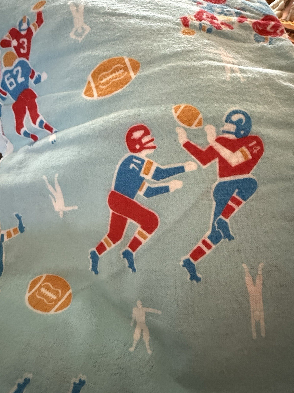 - Football All Over Players Soft Flannel Fabric 2 Yards Sewing Crafts Blue Red