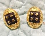 - Football Shaped With Stars Earrings Sports Black Gold Tone Bling Earring 1 Inch
