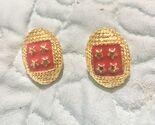 - Football Shaped With Stars Earrings Sports Red Gold Tone Bling Earring 1 Inch