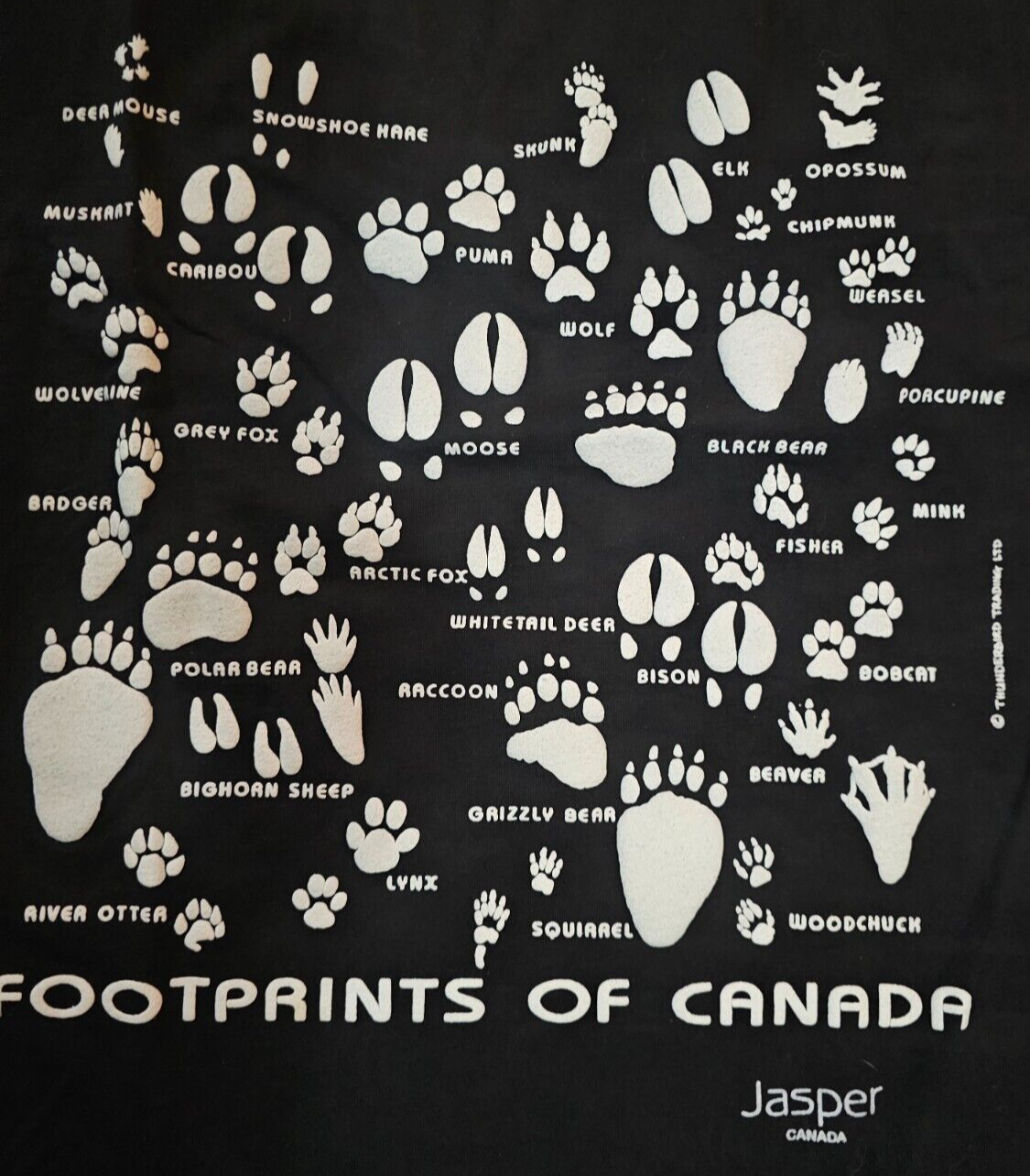FOOTPRINTS OF CANADA Vtg TULTEX Men's 3XL Black T Shirt Glow In The Dark