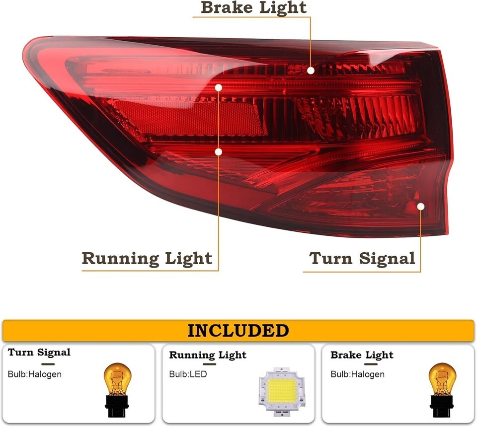 LH LED Tail light Assembly Fit for 2014 2015 2016 2017 2018 2019 2020 Acura MDX Outer Rear Lamp With Bulbs Left Driver Side 33550TZ5A02 AC2804103
