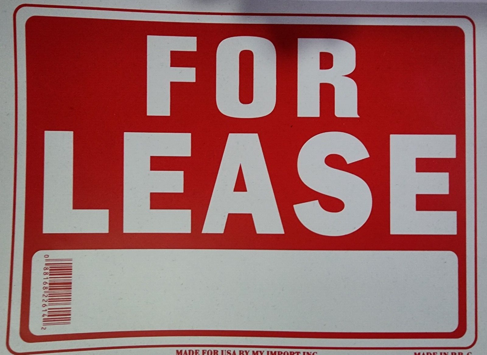 You are Buying a brand New And Factory Sealed For Lease Sign 8 x 12 Inch - 2 Count, White and Red.