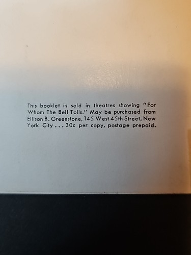- For Whom The Bell Tolls 1943 Paramount Pictures Cooper Bergman Playbill Program