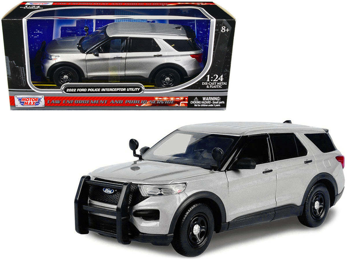 Elevate your collection with the Motormax 1/24 scale Ford Police Interceptor Utility Unmarked Slick-Top. This brand-new, officially licensed diecast captures the 2022 police interceptor in a sleek unmarked silver finish, perfect for display shelves, dioramas, and gifts for vehicle enthusiasts.