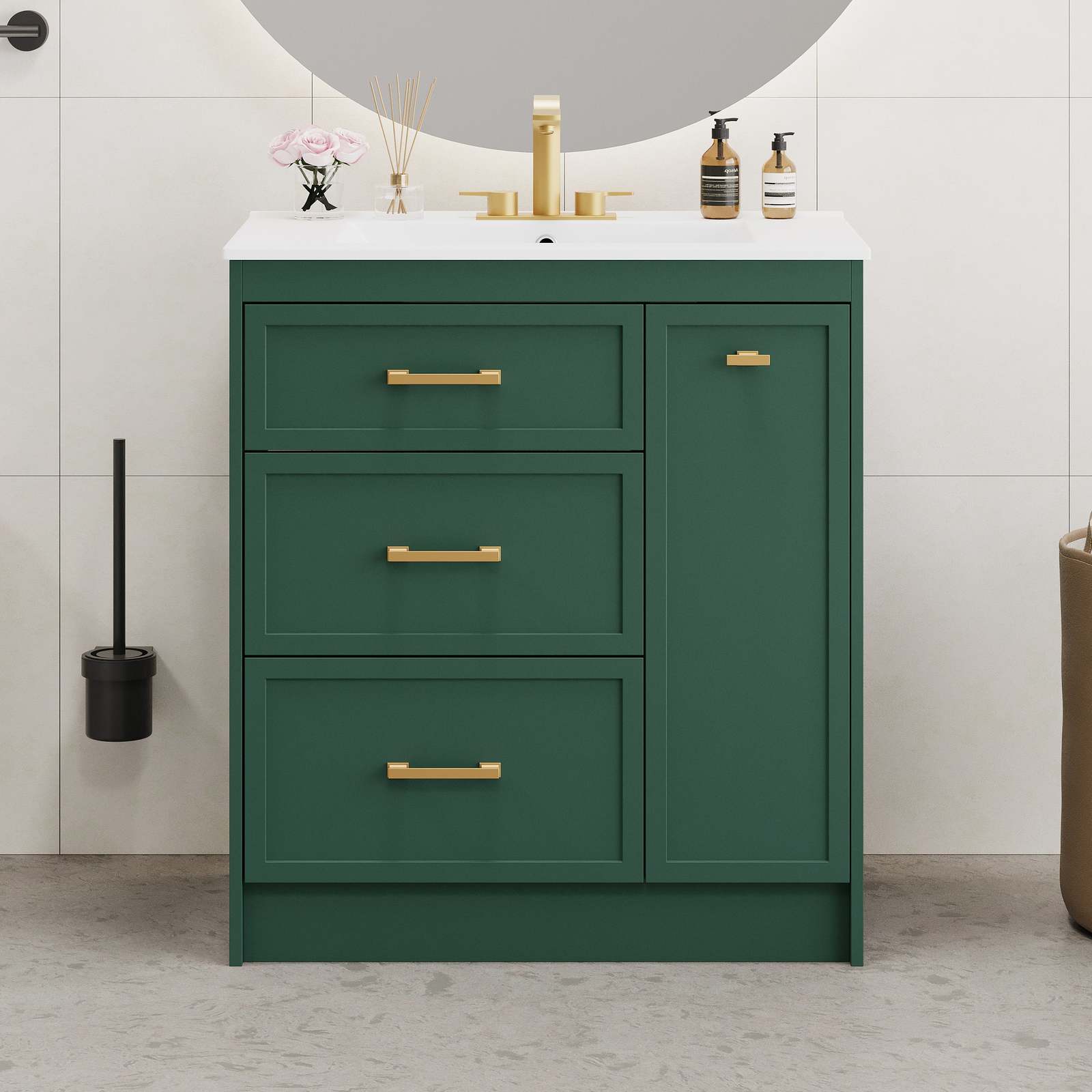 Classic 30' Forest Green Bathroom Vanity Set, Floor Standing, with Three Drawers