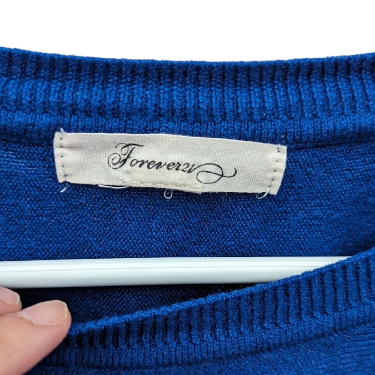 - Forever 21 Soft 3/4 Sleeve Crew Neck Knit Sweater Royal Blue Small S