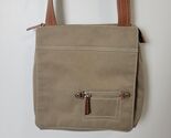 Fossil Army Green Canvas & Leather Purse Crossbody Messenger Bag Multi Pocket