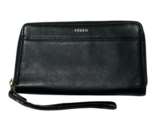 - Fossil Black Leather Wristlet Wallet ID Card Holder Zip Coin Pocket READ