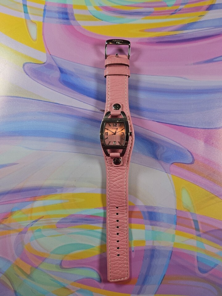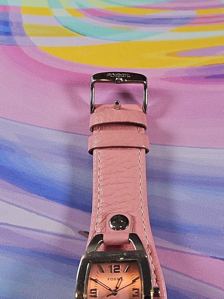 - Fossil Ladies Watch, Pink Genuine Leather Band, Rectangle/Silver Tone Face