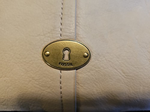 - Fossil Quinn Ivory Pebbled Leather Foldover Hobo Bag SHB6322 *NO HANDLE STRAP*