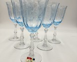 - Fostoria Navarre Blue Art Glass Water Goblets Vintage Etched Floral 7.5” Set 6