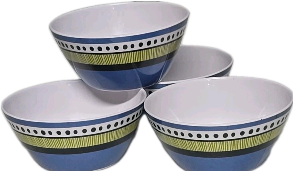 - Four (4) BRYLANEHome ~ Melamine ~ ALMIRA ~ 6" X 2.75" ~ Multi-Colored Bowls (3)