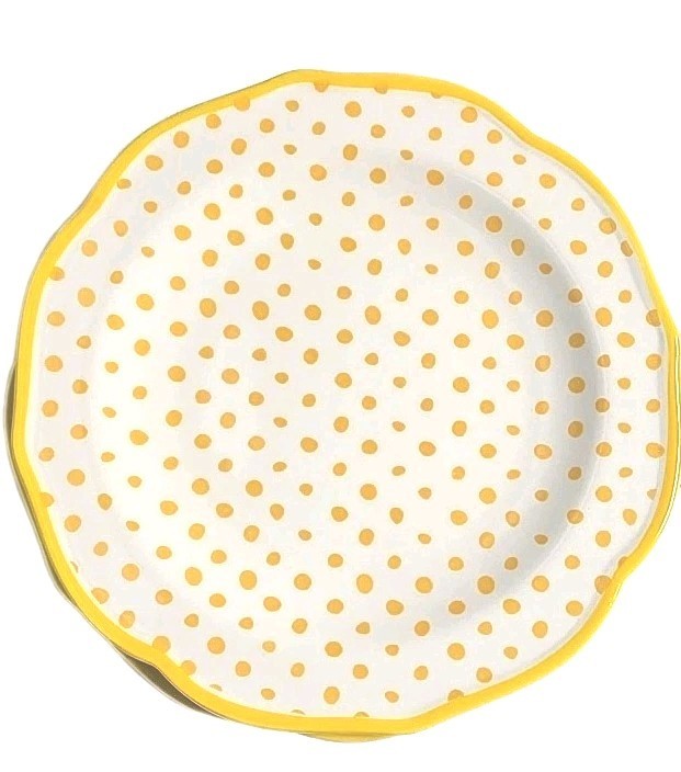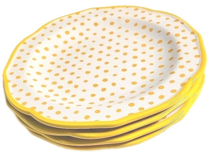 - Four (4) Pioneer Woman ~ YELLOW ~ Retro Polka Dot ~ 8.5" Salad Plate ~ Stoneware